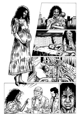 Em 2022 consegui a participação da desenhista Michele Nunes e do colorista Rod Fernandes para dar vida ao roteiro que fui escrevendo aos poucos, adaptando um capítulo por vez.